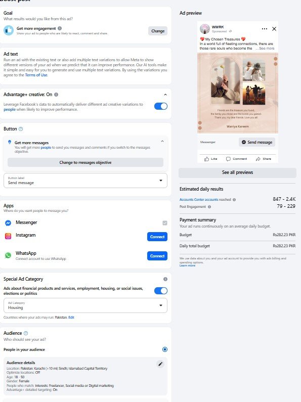Budget: Rs 282.23 PKR (ad runs continuously on an average daily budget).