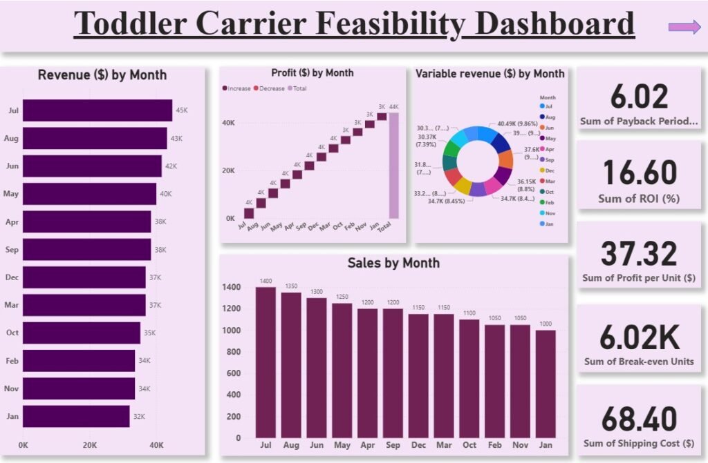 It highlights performance patterns and helps determine the feasibility and long-term viability of the toddler carrier product.